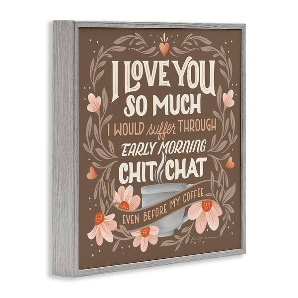 Chat Before Coffee Humor by Gia Graham Gray Framed Food Giclee Art Print 24 in. x 24 in.