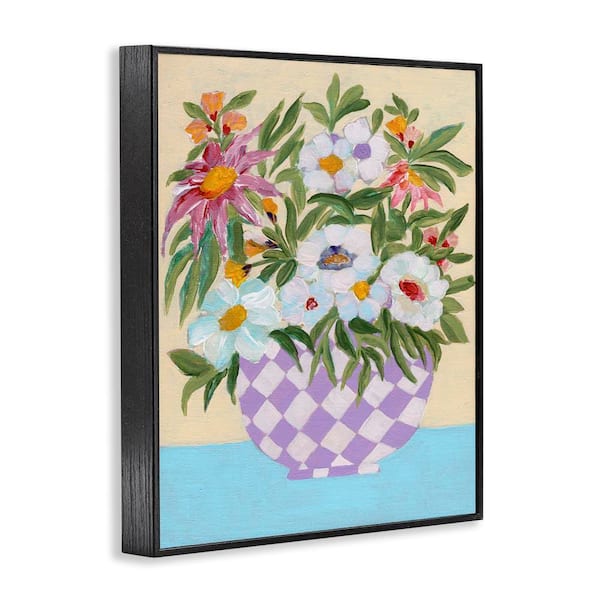 Checkered Flower Pot by Nikita Jariwala Black Framed Nature Giclee Art Print 20 in. x 16 in.