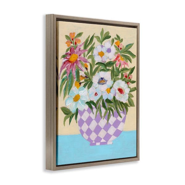 Checkered Flower Pot by Nikita Jariwala Brown Floater Frame Nature Graphic Art Print 21 in. x 17 in.