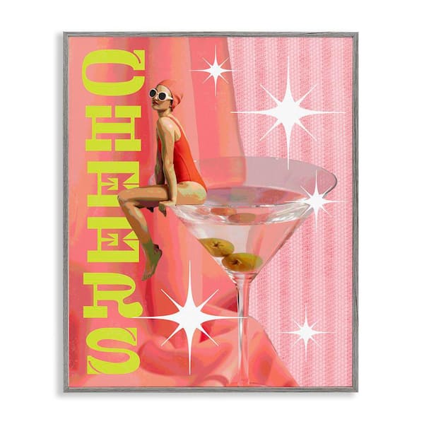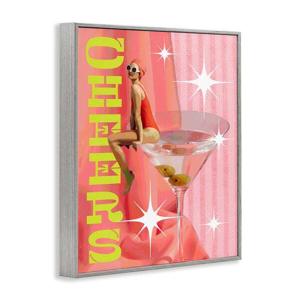 Cheers Retro Drink & Swimmer by Daphne Polselli Gray Framed Food Giclee Art Print 20 in. x 16 in.