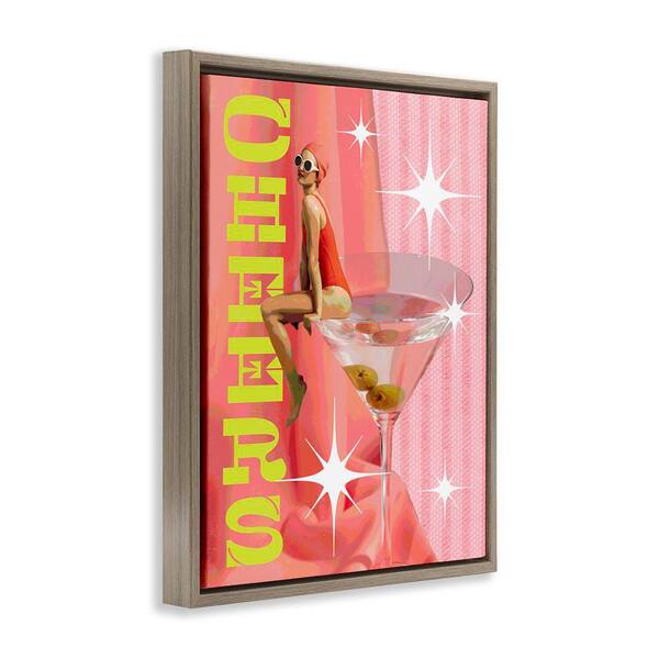 Cheers Retro Drink and Swimmer by Daphne Polselli Brown Floater Frame Food Graphic Art Print 31 in. x 25 in.