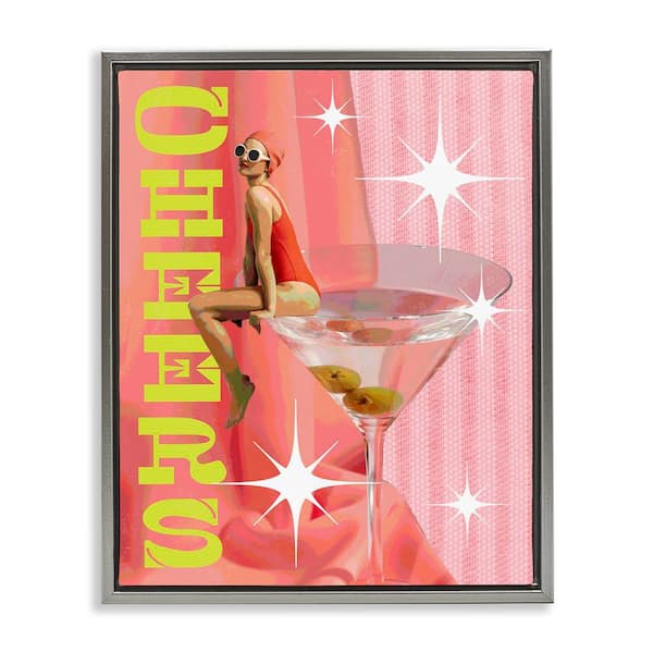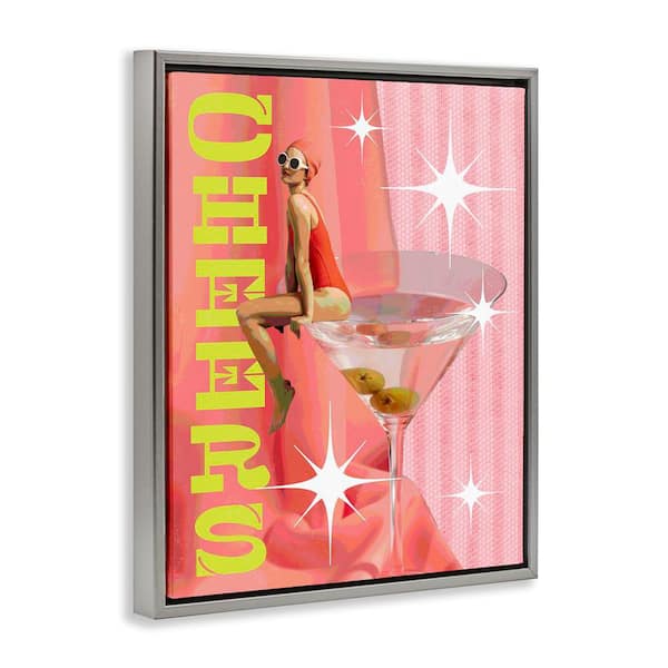 Cheers Retro Drink and Swimmer by Daphne Polselli Gray Floater Frame Food Graphic Art Print 21 in. x 17 in.