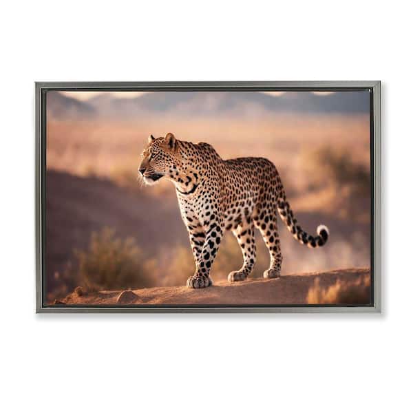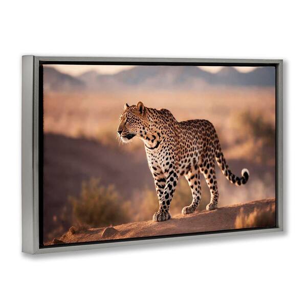 Cheetah On Patrol by Noah Bay Gray Floater Frame Animal Graphic Art Print 21 in. x 31 in.