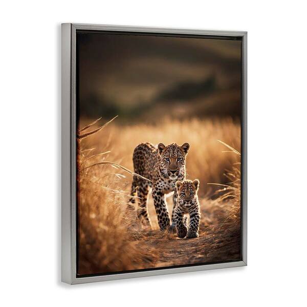 Cheetah and Cub in Nature by Noah Bay Gray Floater Frame Animal Graphic Art Print 21 in. x 17 in.