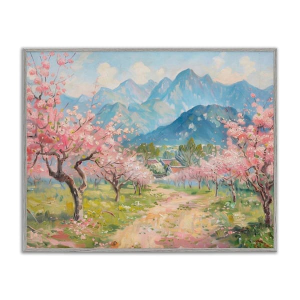 Cherry Blossom Mountains by LSR Design Studio Gray Framed Nature Giclee Art Print 24 in. x 30 in.