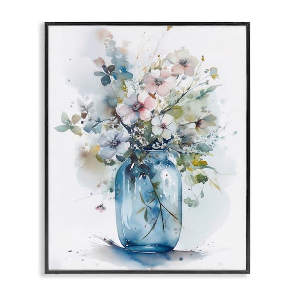 Cherry Blossoms Country Jar by Incado Black Framed Nature Giclee Art Print 30 in. x 24 in.