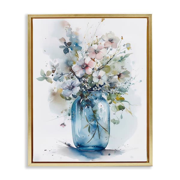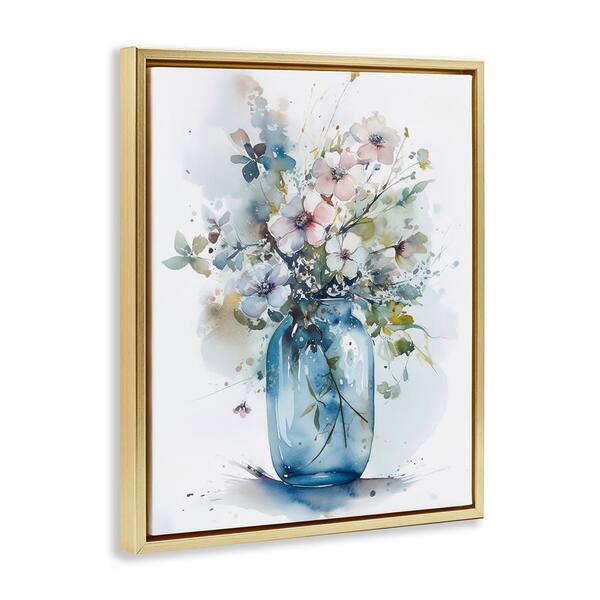 Cherry Blossoms Country Jar by Incado Gold Floater Frame Nature Graphic Art Print 31 in. x 25 in.