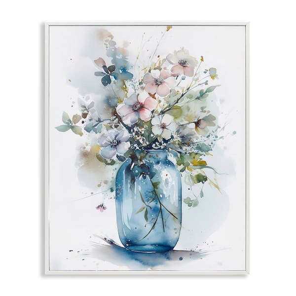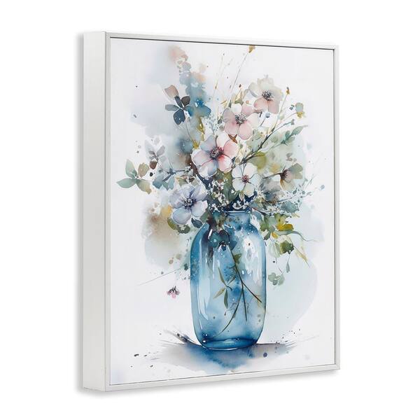 Cherry Blossoms Country Jar by Incado White Framed Nature Giclee Art Print 14 in. x 11 in.