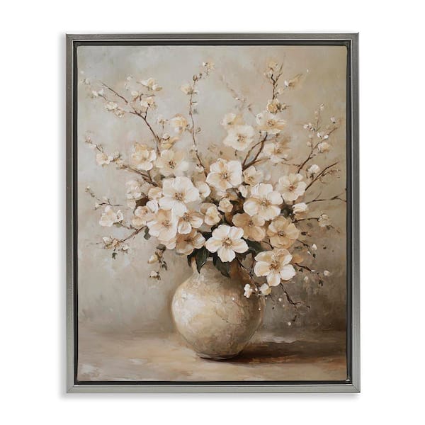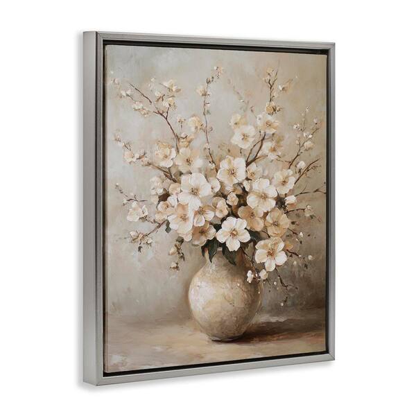 Cherry Blossoms in Pottery by Petal Prints Design Gray Floater Frame Nature Graphic Art Print 31 in. x 25 in.