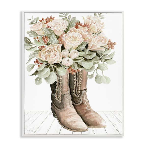 Chic Bouquet Boots by Cindy Jacobs White Framed Nature Giclee Art Print 30 in. x 24 in.