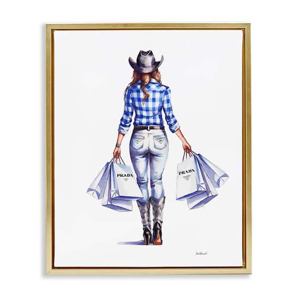 Chic Cowgirl and Shopping Bags by Amanda Greenwood Gold Floater Frame People Graphic Art Print 31 in. x 25 in.