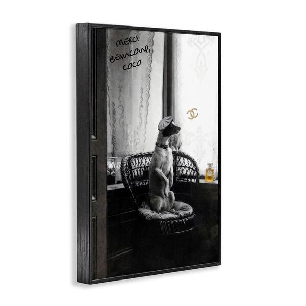 Chic Dog with French Words by Graffi*tee Studios Black Framed Animal Giclee Art Print 24 in. x 16 in.