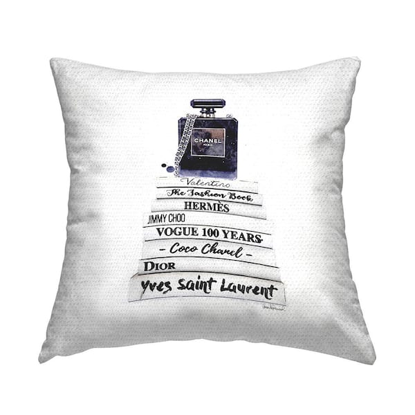 Chic Glam Designer Brands Stacked Perfume Bottle Black Square Outdoor Throw Pillow