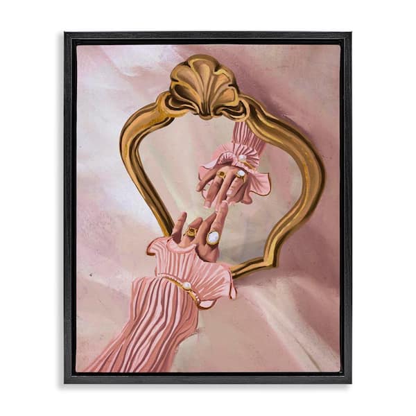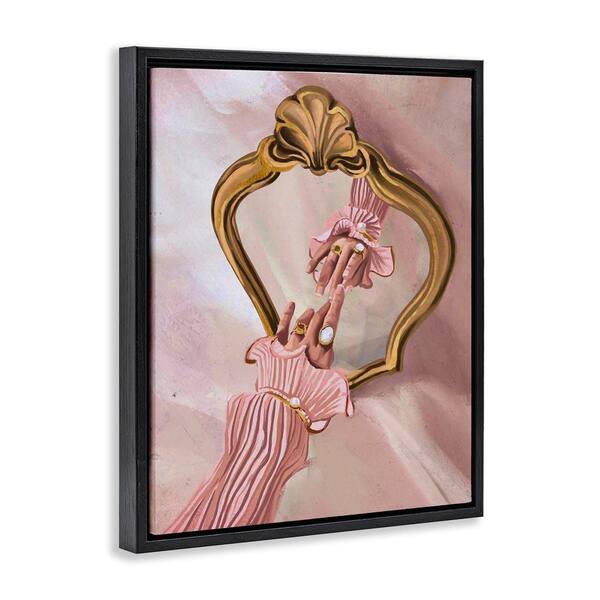 Chic Hand Mirror Reflection by Svetlana Aleynikova Black Floater Frame People Graphic Art Print 31 in. x 25 in.