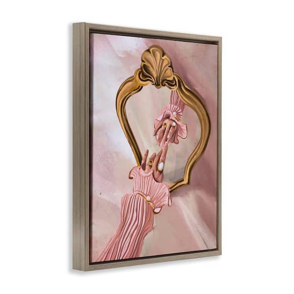 Chic Hand Mirror Reflection by Svetlana Aleynikova Brown Floater Frame People Graphic Art Print 31 in. x 25 in.