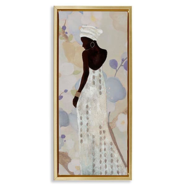 Chic Natural Hues Woman by Janet Tava Gold Floater Frame People Graphic Art Print 25 in. x 11 in.
