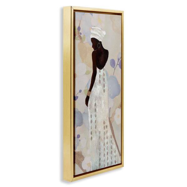 Chic Natural Hues Woman by Janet Tava Gold Floater Frame People Graphic Art Print 31 in. x 15 in.