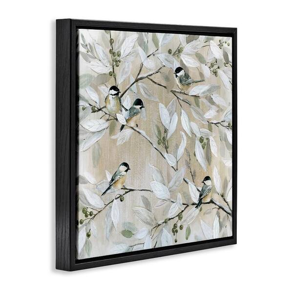 Chickadee Birds on Branches by Carol Robinson 1 Piece Black Floater Frame Nature Graphic Art Print 18 in. x 18 in.