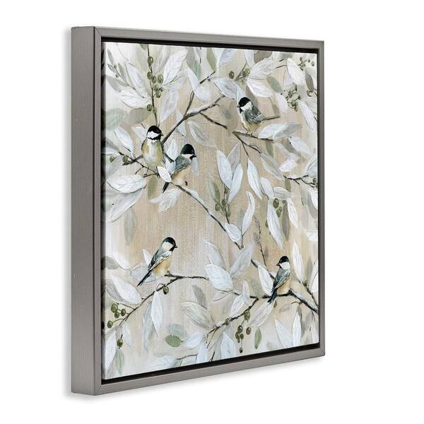 Chickadee Birds on Branches by Carol Robinson 1-Piece Gray Floater Frame Nature Graphic Art print 18 in. x 18 in.