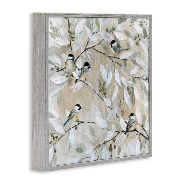 Chickadee Birds on Branches by Carol Robinson 1-Piece Gray Framed Nature Giclee Art print 12 in. x 12 in.