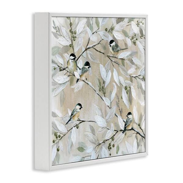 Chickadee Birds on Branches by Carol Robinson 1-Piece White Framed Nature Giclee Art print 24 in. x 24 in.