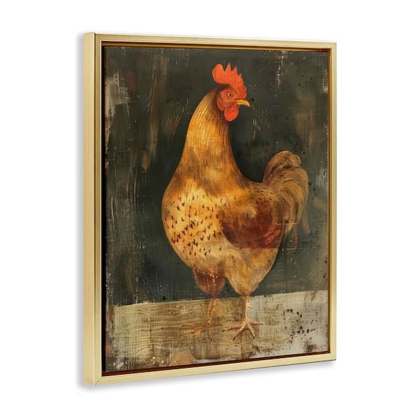 Chicken on Rustic Background by LSR Design Studio Gold Floater Frame Animal Graphic Art Print 21 in. x 17 in.