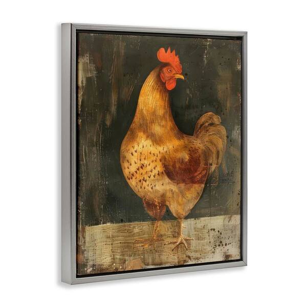 Chicken on Rustic Background by LSR Design Studio Gray Floater Frame Animal Graphic Art Print 31 in. x 25 in.
