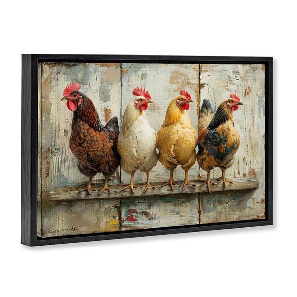 Chickens In A Row by LSR Design Studio Black Floater Frame Animal Graphic Art Print 21 in. x 31 in.
