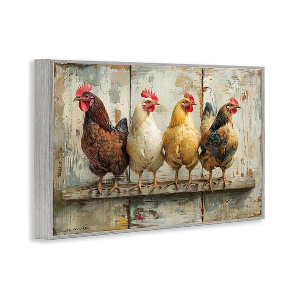 Chickens in a Row by LSR Design Studio Gray Framed Animal Giclee Art Print 16 in. x 24 in.