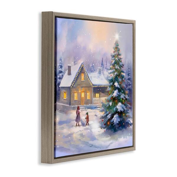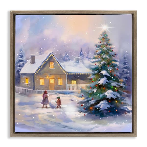Children Building Snowman by Enrico McGarrigle 1 Piece Floater Frame Graphic Print Nature Art Print 18 in. x 18 in.