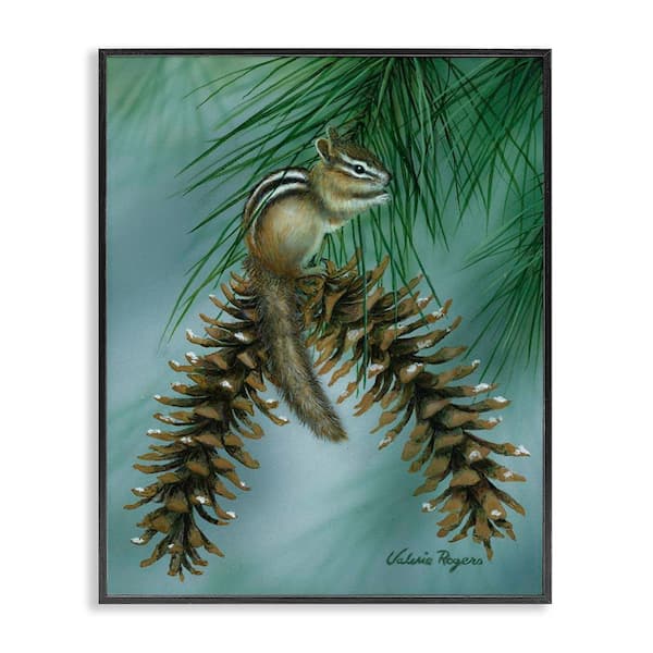 Chipmunk Pine Cone Perch by Valerie Rogers Black Framed Animal Giclee Art Print 20 in. x 16 in.