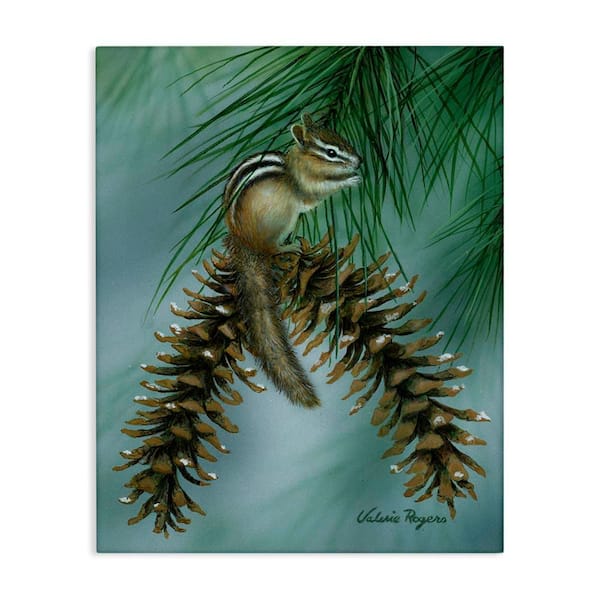 Chipmunk Pine Cone Perch by Valerie Rogers Unframed Animal Graphic Art Print 20 in. x 16 in.