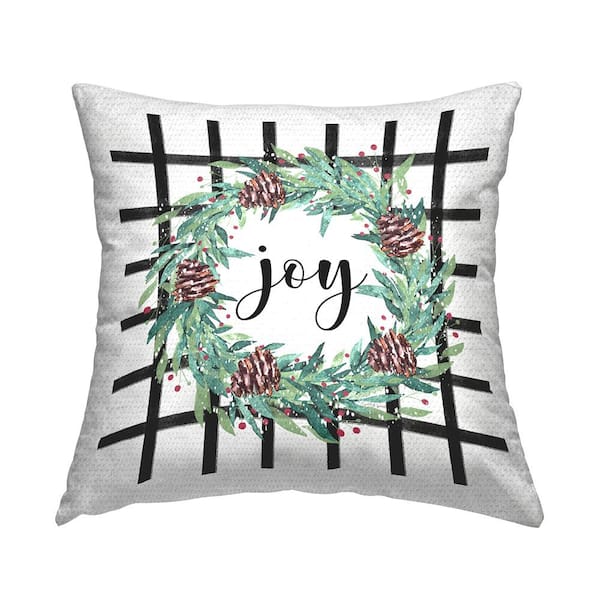 Christmas Joy Pinecone Wreath Green Square Outdoor Throw Pillow