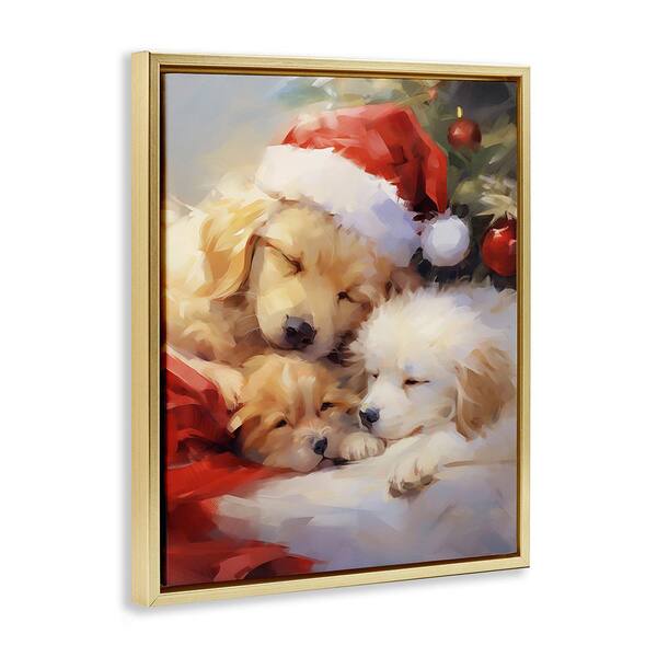 Christmas Puppies Tree by Enrico McGarrigle 1-Piece Floater Frame Graphic Print Animal Poster Art Print 21 in. x 17 in.