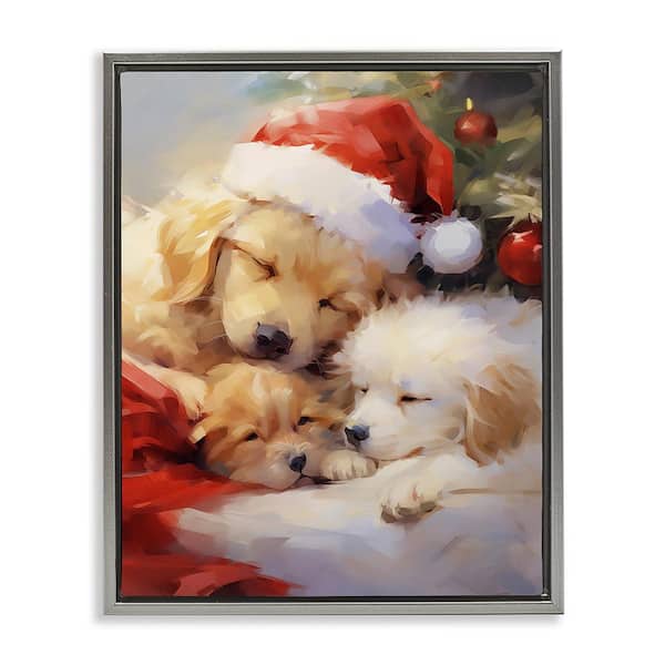 Christmas Puppies Tree by Enrico McGarrigle 1-Piece Floater Frame Graphic Print Animal Poster Art Print 31 in. x 25 in.