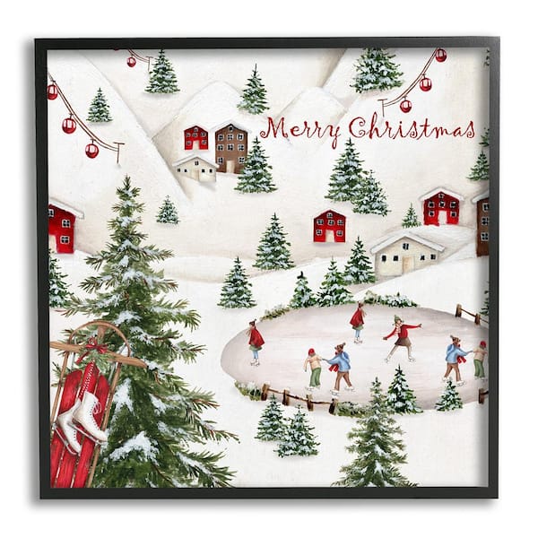 Christmas Town Ice Skating by Emma Leach 1 Piece Framed Graphic Print People Poster Art Print 24 in. x 24 in.