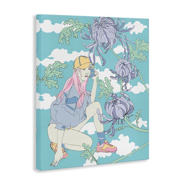 Chrysanthemums and Workout Girl by Melissa Wang Unframed People Graphic Art Print 48 in. x 36 in.