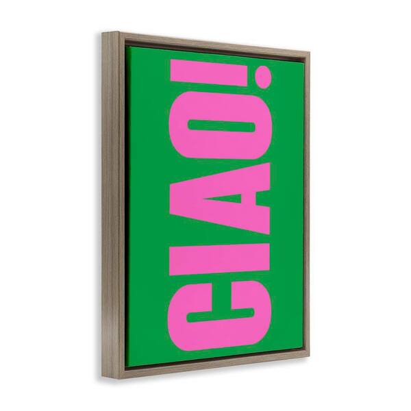 Ciao Pink and Green by House of Lulu Brown Floater Frame Typography Graphic Art Print 31 in. x 25 in.