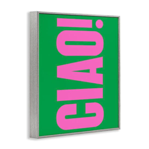 Ciao Pink and Green by House of Lulu Gray Framed Typography Giclee Art Print 30 in. x 24 in.