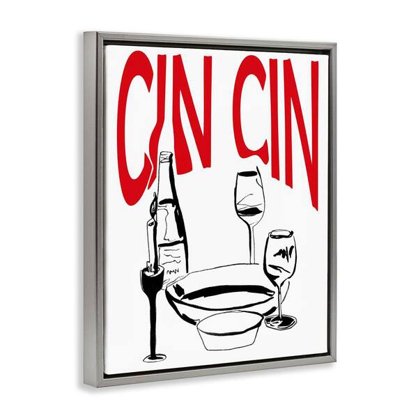 Cin Cin Wine Glasses by Melissa Wang Gray Floater Frame Food Graphic Art Print 31 in. x 25 in.