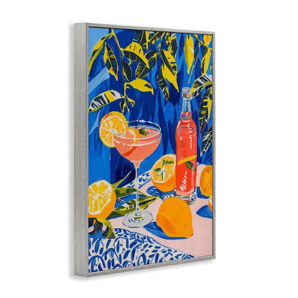 Citrus Cocktail Still Life by LSR Design Studio Gray Framed Food Giclee Art Print 18 in. x 12 in.