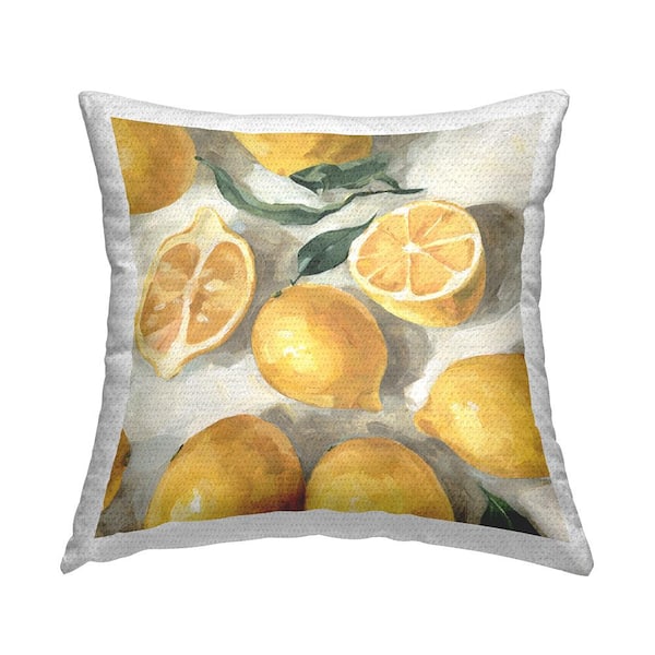 Citrus Lemon Fruits Sliced Country Farmhouse Yellow Square Outdoor Throw Pillow