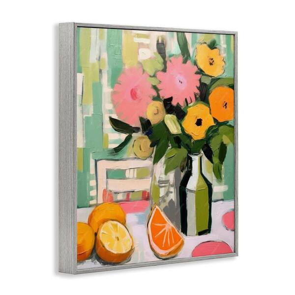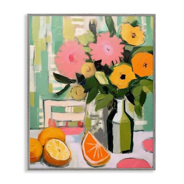 Citrus Slices and Bouquet by LSR Design Studio Gray Framed Food Giclee Art Print 20 in. x 16 in.
