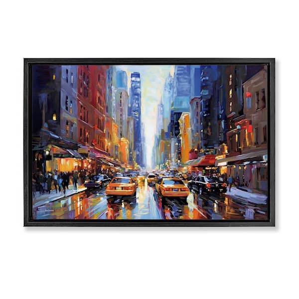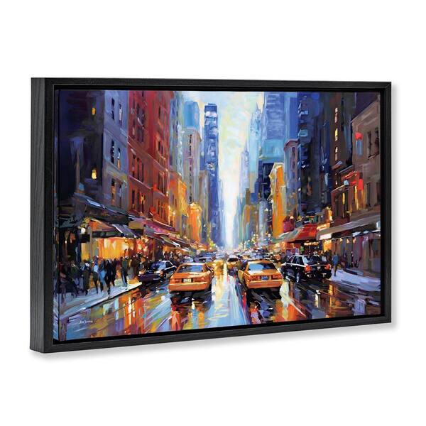City Traffic in Rain by Leon Devenice Black Floater Frame Abstract Graphic Art Print 21 in. x 31 in.