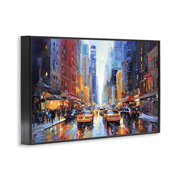 City Traffic in Rain by Leon Devenice Black Framed Abstract Giclee Art Print 16 in. x 24 in.