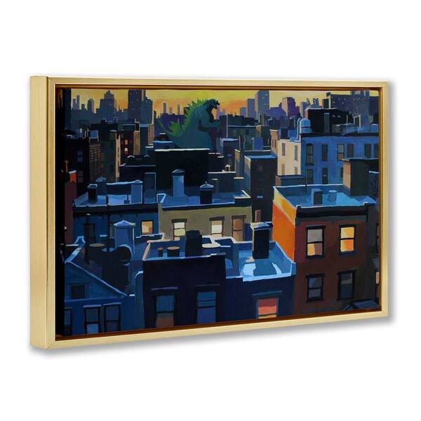 Cityscape with Distant Monster by Keith Thomson Gold Floater Frame Abstract Graphic Art Print 17 in. x 25 in.