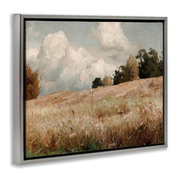 Classic Cloudy Field Landscape by Lettered and Lined 1-Piece Gray Floater Frame Nature Graphic Art Print 25 in. x 31 in.
