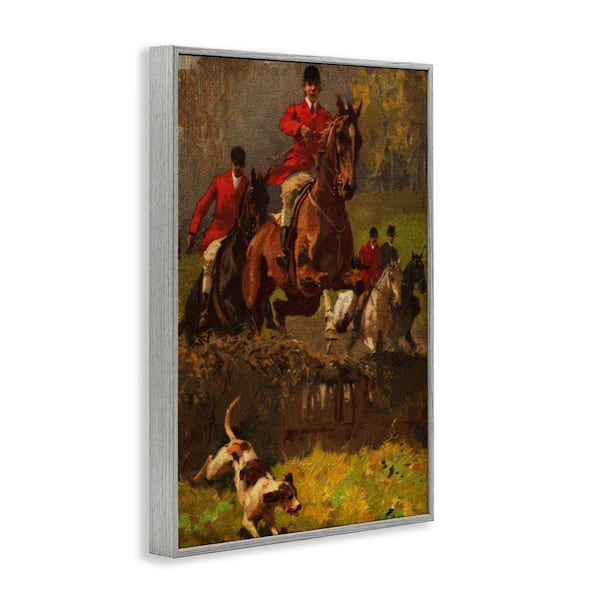 Classic Hunting Dog Scene by Tina Higgins Designs, Inc. Gray Framed People Giclee Art Print 18 in. x 12 in.