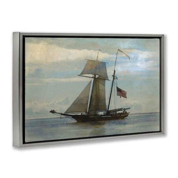 Classic Ship with Flag by Graffi tee Studios Gray Floater Frame Typography Graphic Art Print 17 in. x 25 in.