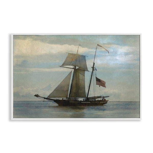 Classic Ship with Flag by Graffi*tee Studios White Framed Typography Giclee Art Print 16 in. x 24 in.